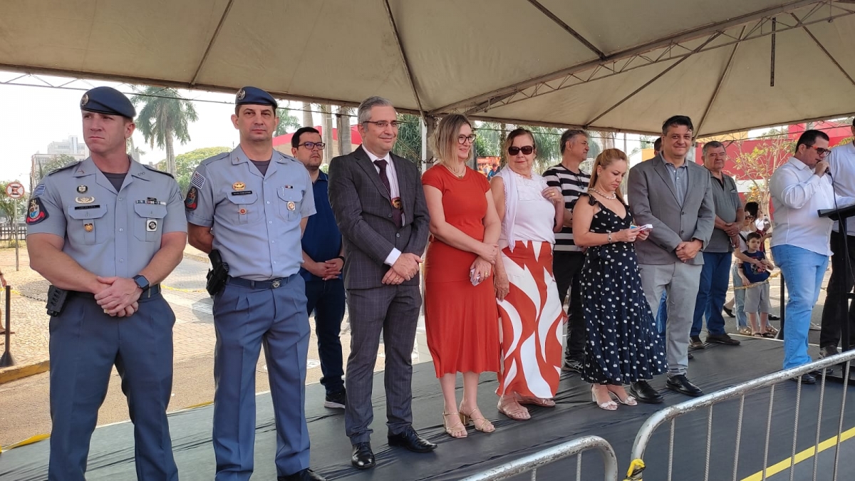 Autoridades acompanharam o desfile na Rua Brasil