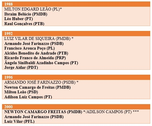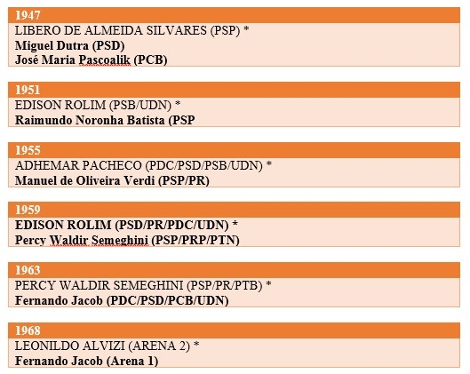 Veja no quadro todas as eleições e os prefeitos eleitos pelo voto popular desde 1947