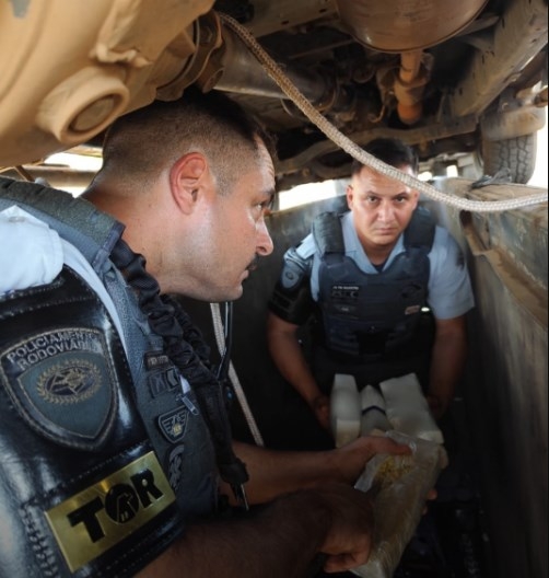 Policiais rodoviários descobrem a cocaína escondia em tanque falso