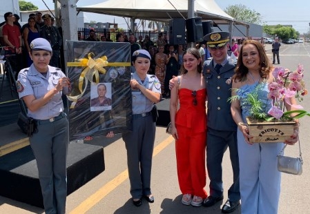 Momento de emoção: Belentani recebe poster do pai, sargento da Polícia Militar já falecido