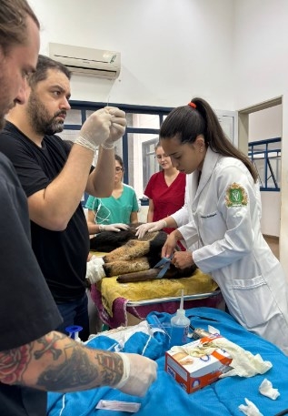 Equipe do Hospital Veterinário da Universidade Brasil socorrem o animal