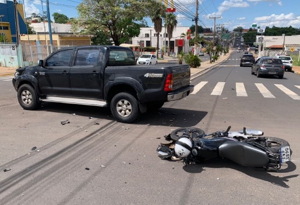 Um acidente envolvendo moto e caminhonete foi registrado no início da tarde desta quarta-feira, 6, em Fernandópolis