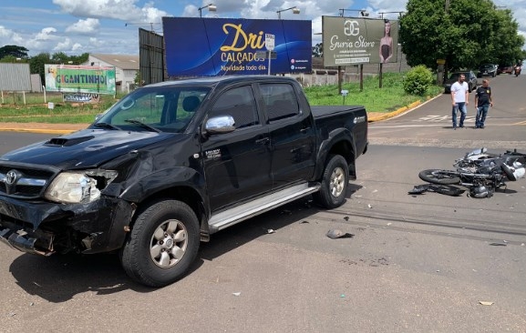 Moto seguia pela Avenida Expedicionários Brasileiros e na rotatória no cruzamento com a Rua Cherubim Zaparolli foi atingida por uma caminhonete Hilux que cruzava o local.