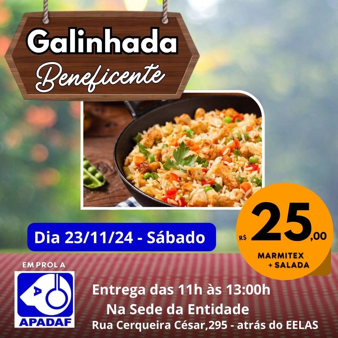 A Apadaf – Associação de Pais e Amigos dos Deficientes Auditivos – agendou para o dia 23 de novembro, a realização da sua tradicional “galinhada beneficente”.