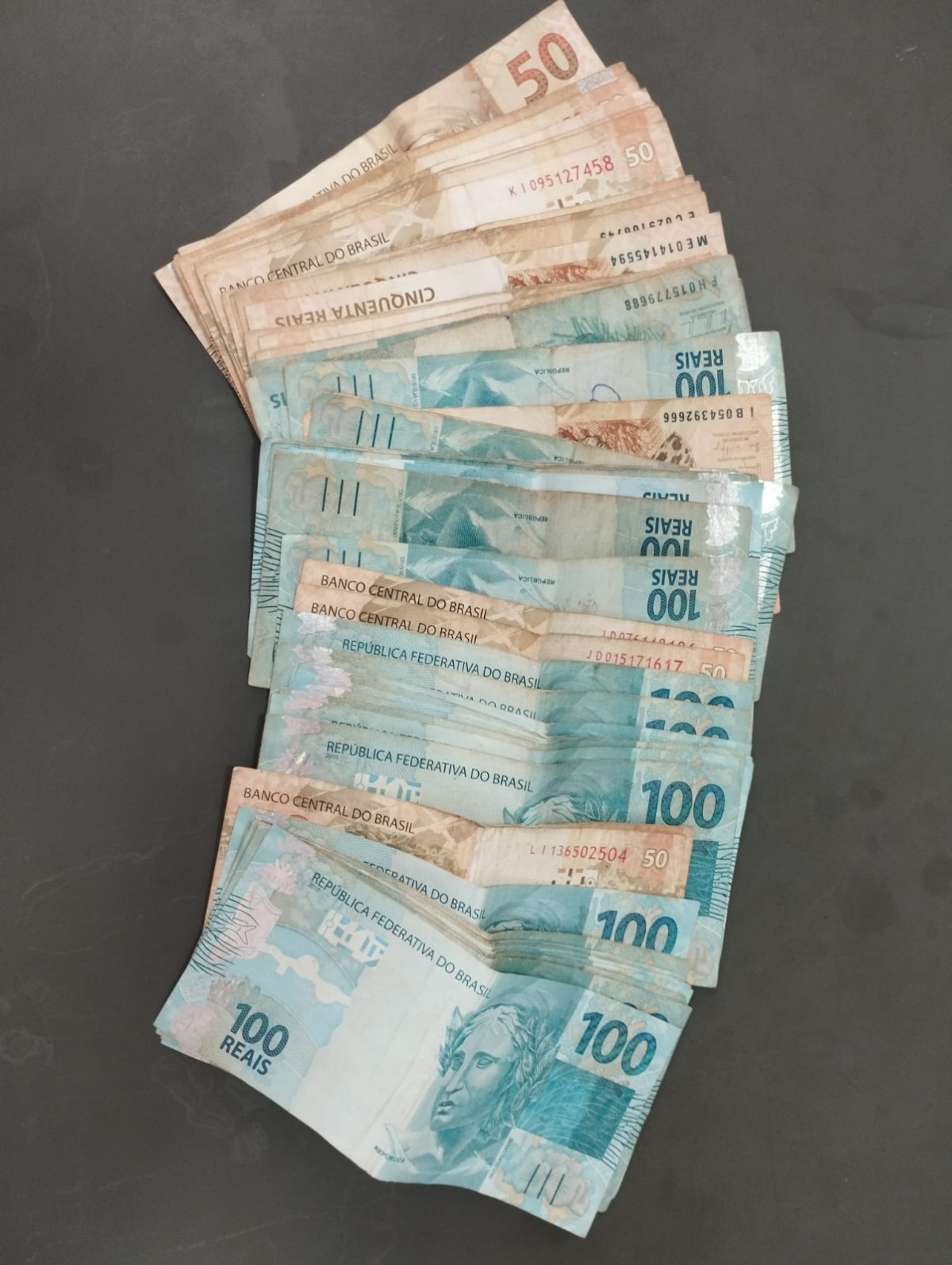 Quantia de R$ 10,5 mil encontrado com os cinco individuos