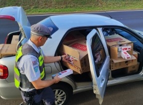 De acordo com a Polícia Rodoviária, a equipe de patrulhamento durante Operação Impacto deparou com um Fiat/Siena transitando em alta velocidade e passou a fazer o acompanhamento do veículo até a interceptação. O motorista demostrou nervosismo durante vistoria veicular, quando os policiais rodoviários localizaram grande quantidade de cigarros contrabandeados.