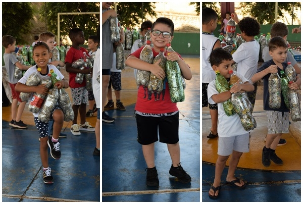 Na oportunidade, foram entregues as garrafas com os lacres arrecadados, simbolizando o impacto da solidariedade da comunidade escolar.