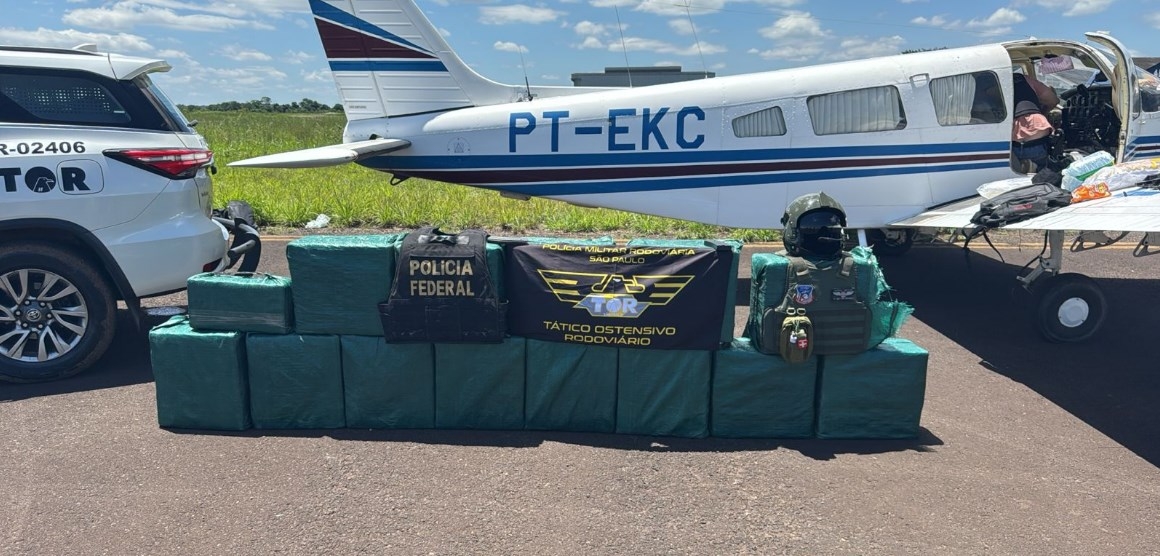 De acordo com a PM, a aeronave, que saiu do Mato Grosso do Sul, pousou em um aeroporto clandestino próximo ao terminal aéreo de Penápolis, na região de Araçatuba.