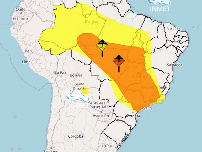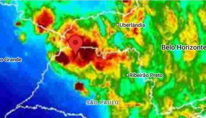 Imagens do satélite do Inmet mostra a concentração de nuvens sobre Fernandópolis e região