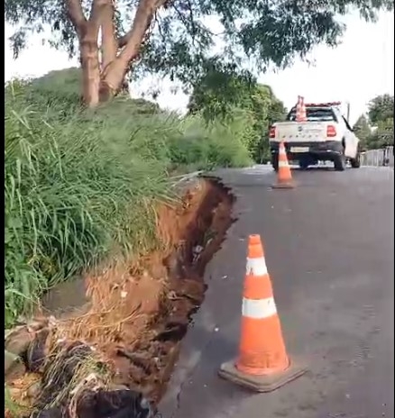 Cratera se abriu na lateral do acesso da Cohab João Pimenta para a rotatória da rodovia