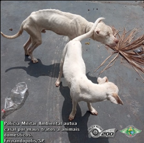 A Polícia Ambiental de Fernandópolis autuou um casal na cidade em R$ 12 mil por maus-tratos a animais. Dois cães foram encontrados abandonados em uma residência, infestados de ectoparasitas e muito magros.
