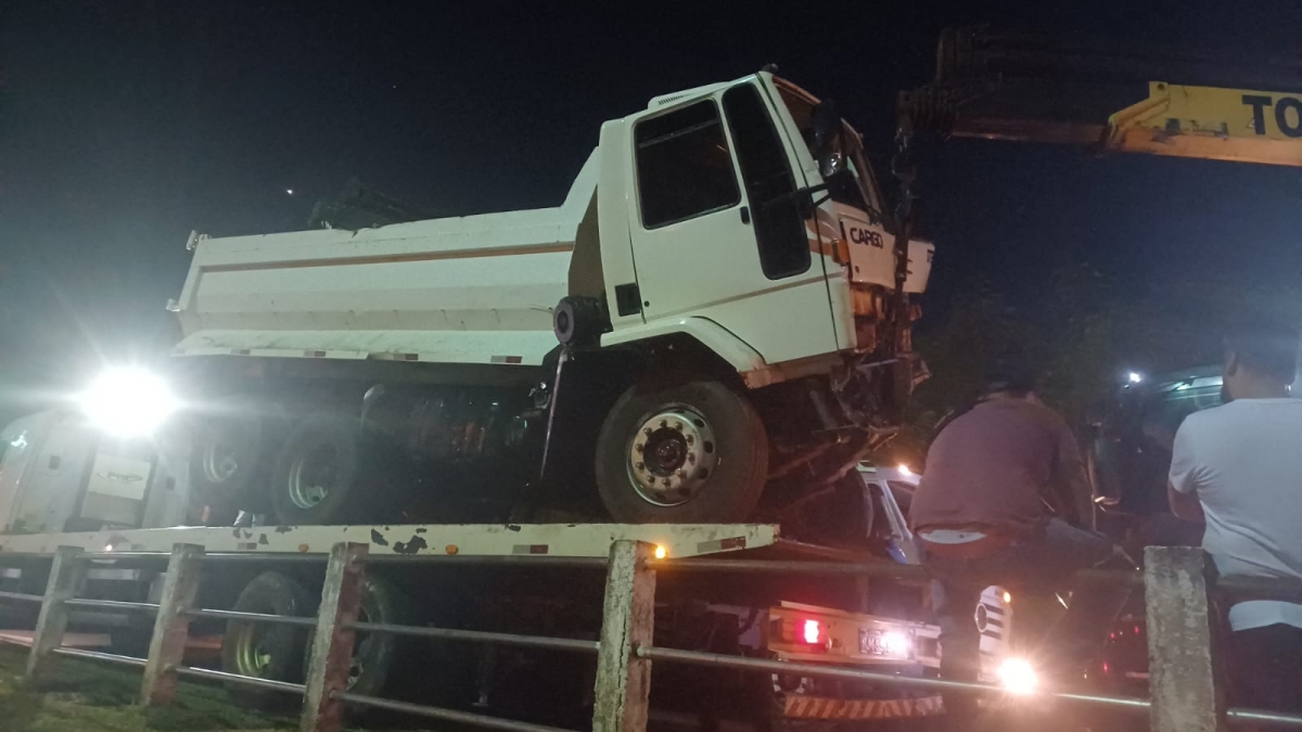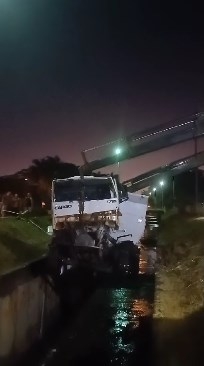 Uma megaoperação foi montada no início da noite desta quinta-feira, 9, para retirar o caminhão basculante que caiu no canal da Avenida Getúlio Vargas em Fernandópolis.