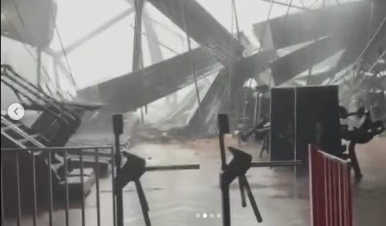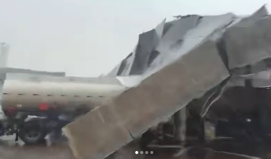 Cobertura do posto de gasolina desabou sobre caminhão de combustivel