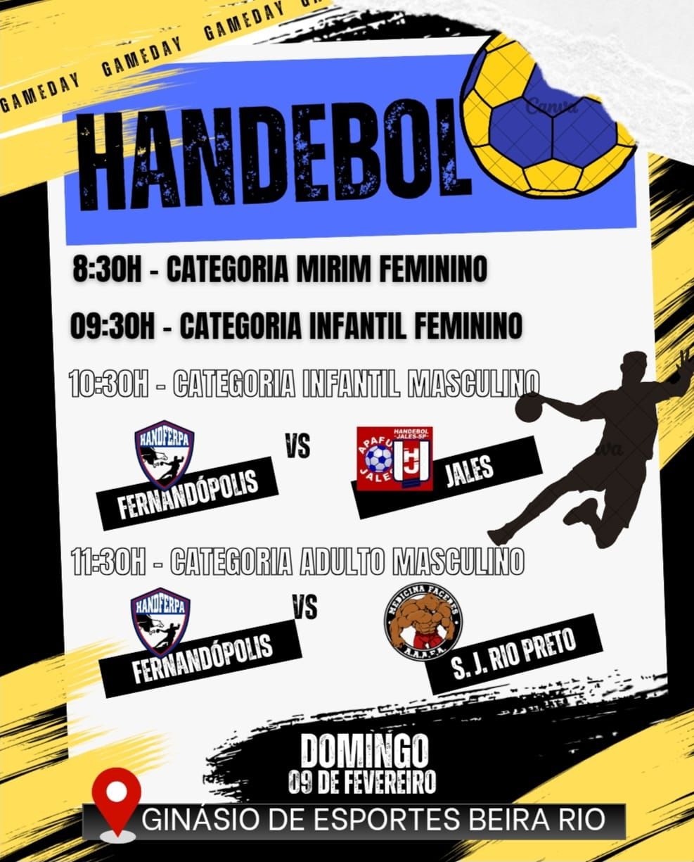O encerramento do evento será no domingo (09), com um dia repleto de handebol. A programação começa às 8h30 com a categoria mirim feminino, seguida do infantil feminino às 9h30 e do infantil masculino às 10h30, todos em partidas entre Fernandópolis e Jales. Às 11h30, o time adulto masculino de Fernandópolis enfrentará São José do Rio Preto.