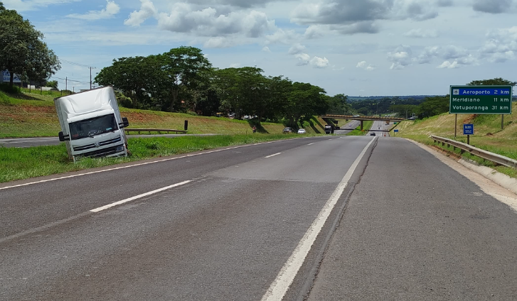 O acidente ocorreu na manhã desta terça-feira, 11, no km 552 da Rodovia Euclides da Cunha em Fernandópolis. Um caminhão baú de Santa Fé do Sul que seguia na pista Fernandópolis a Estrela d´Oeste foi parar no canteiro central da rodovia. O motorista alegou ter perdido o controle da direção. Ele saiu ileso.