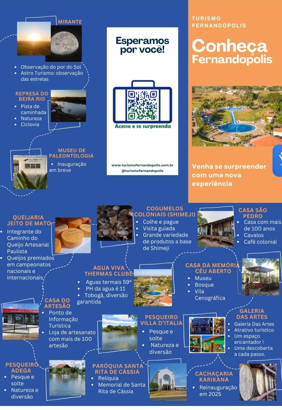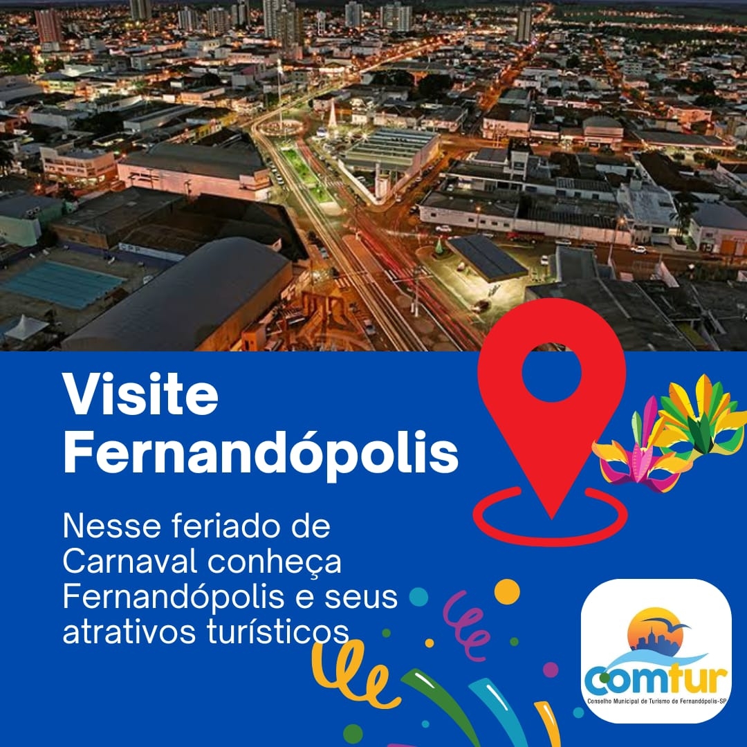 Vem aí o feriadão do carnaval e Fernandópolis deve receber grande número de visitantes no período. O Comtur - Conselho Municipal de Turismo de Fernandópolis - divulgou o roteiro dos principais pontos turísticos da cidade. A iniciativa busca incentivar moradores e visitantes a conhecerem as opções de lazer, cultura e gastronomia disponíveis no município.