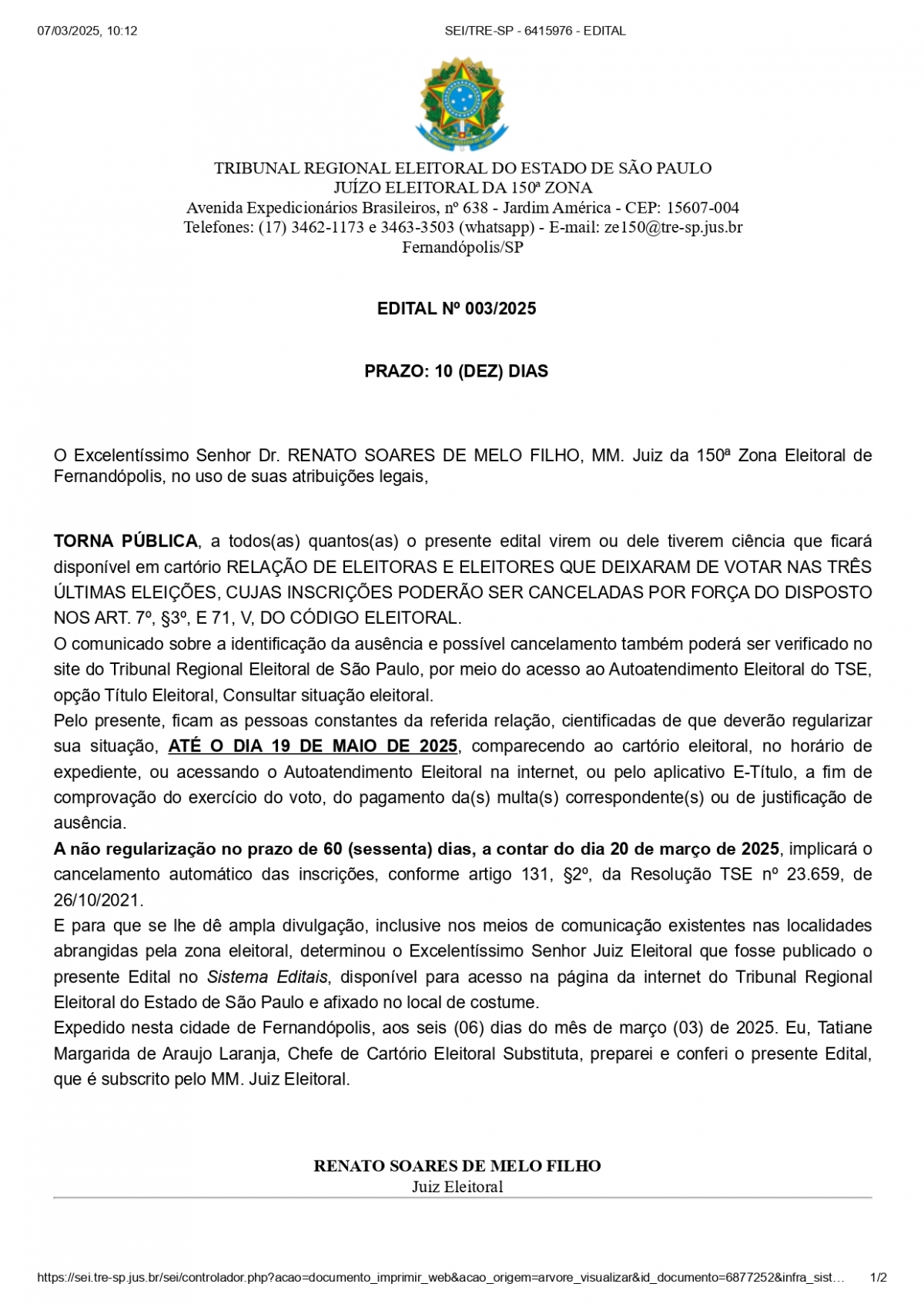 SINCOMÉRCIO FERNANDÓPOLIS - EDITAL DE CONVOCAÇÃO
