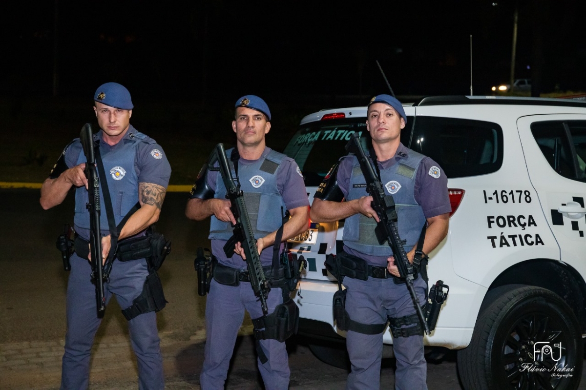 Equipe da Força Tática da Polícia Militar que prendeu traficante e apreendeu droga em Fernandópolis