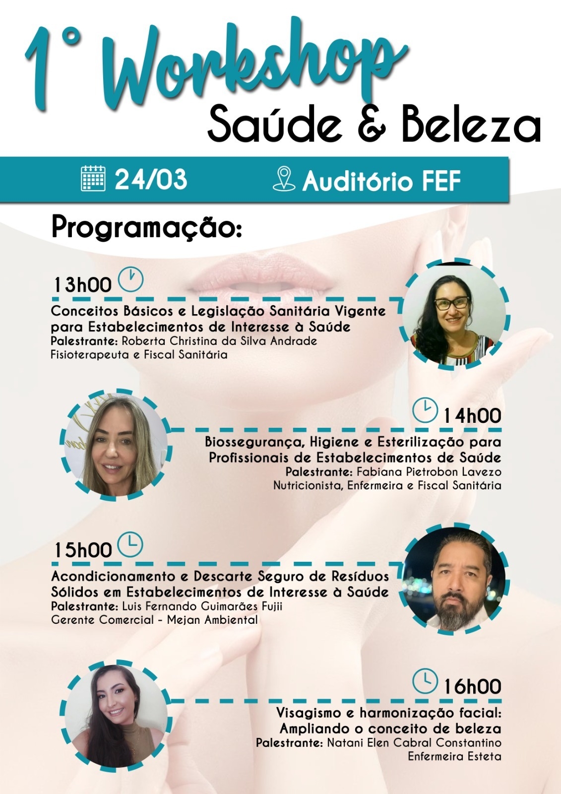 O “1° Workshop Saúde e Beleza” de Fernandópolis vai acontece no dia 24 de março acontecerá no auditório da FEF - Fundação Educacional de Fernandópolis. Oportunidade para os profissionais das áreas de saúde e estética se atualizarem sobre temas essenciais como legislação sanitária, biossegurança, esterilização de equipamentos e descarte seguro de resíduos sólidos