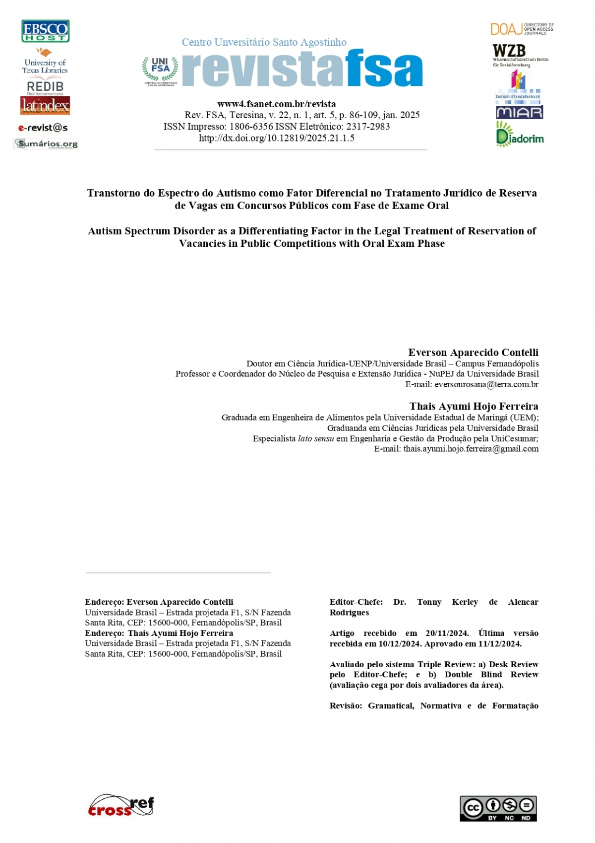 No dia Mundial da Conscientização do Autismo, 2 de abril, publicamos artigo cientifico assinado por Everson Aparecido Contelli, Doutor em Ciência Jurídica-UENP/Universidade Brasil – Campus Fernandópolis - Professor e Coordenador do Núcleo de Pesquisa e Extensão Jurídica - NuPEJ da Universidade Brasil – Professor da FGV, MBA em Cibersegurança e por Thais Ayumi Hojo Ferreira Graduada em Engenheira de Alimentos pela Universidade Estadual de Maringá (UEM); Graduanda em Ciências Jurídicas pela Universidade Brasil Especialista lato sensu em Engenharia e Gestão da Produção pela UniCesumar. Dr. Everson Contelli também é delegado seccional de Polícia em Fernandópolis.