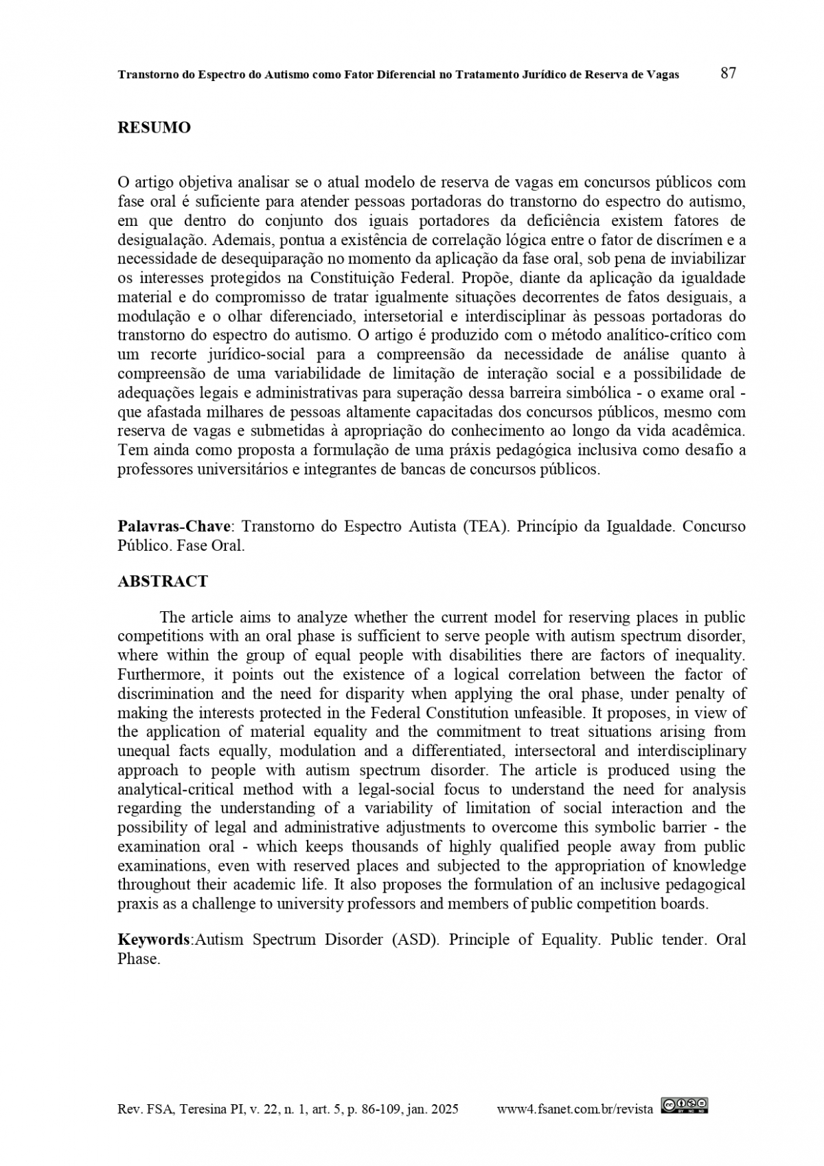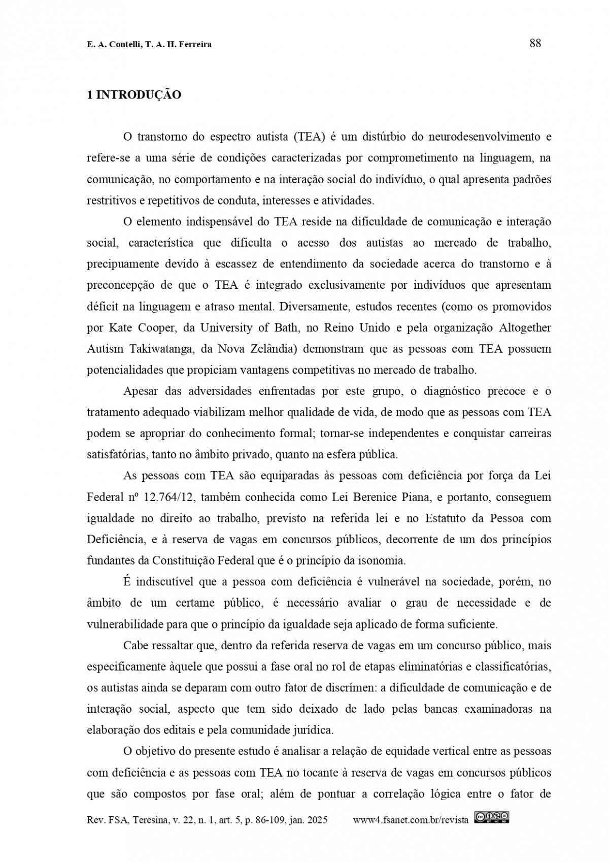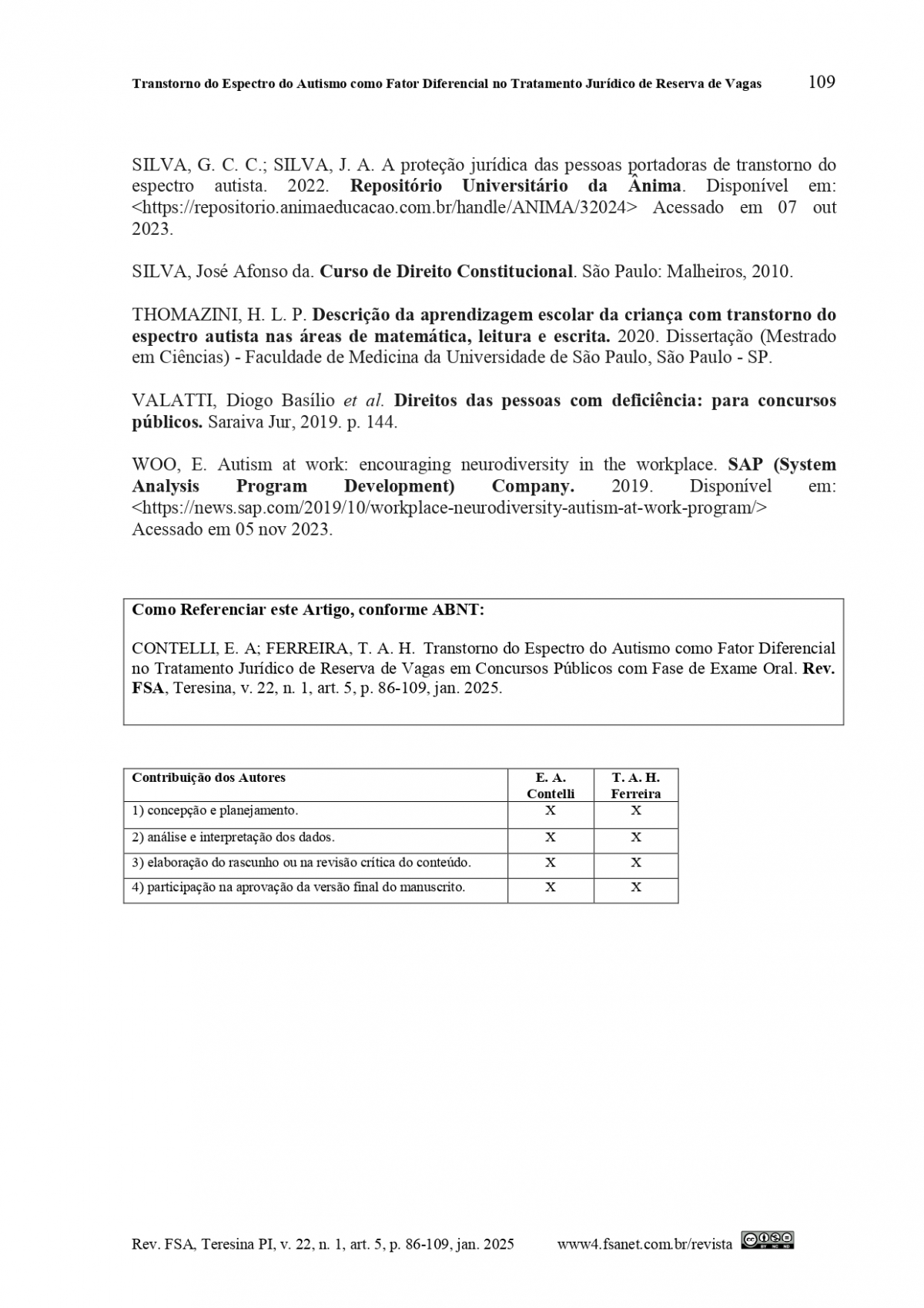 O artigo foi publicado na revista FSA do Centro Universitário Santo Agostinho, edição de janeiro.