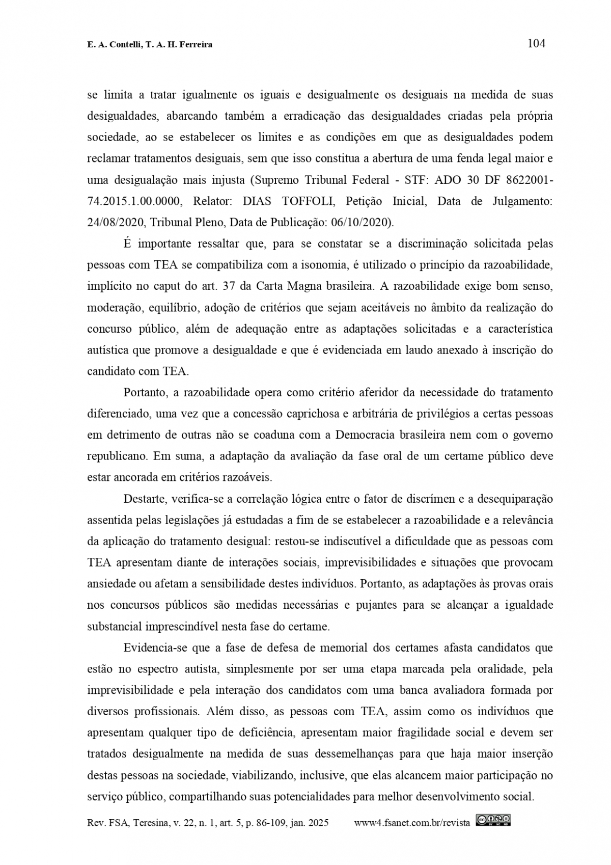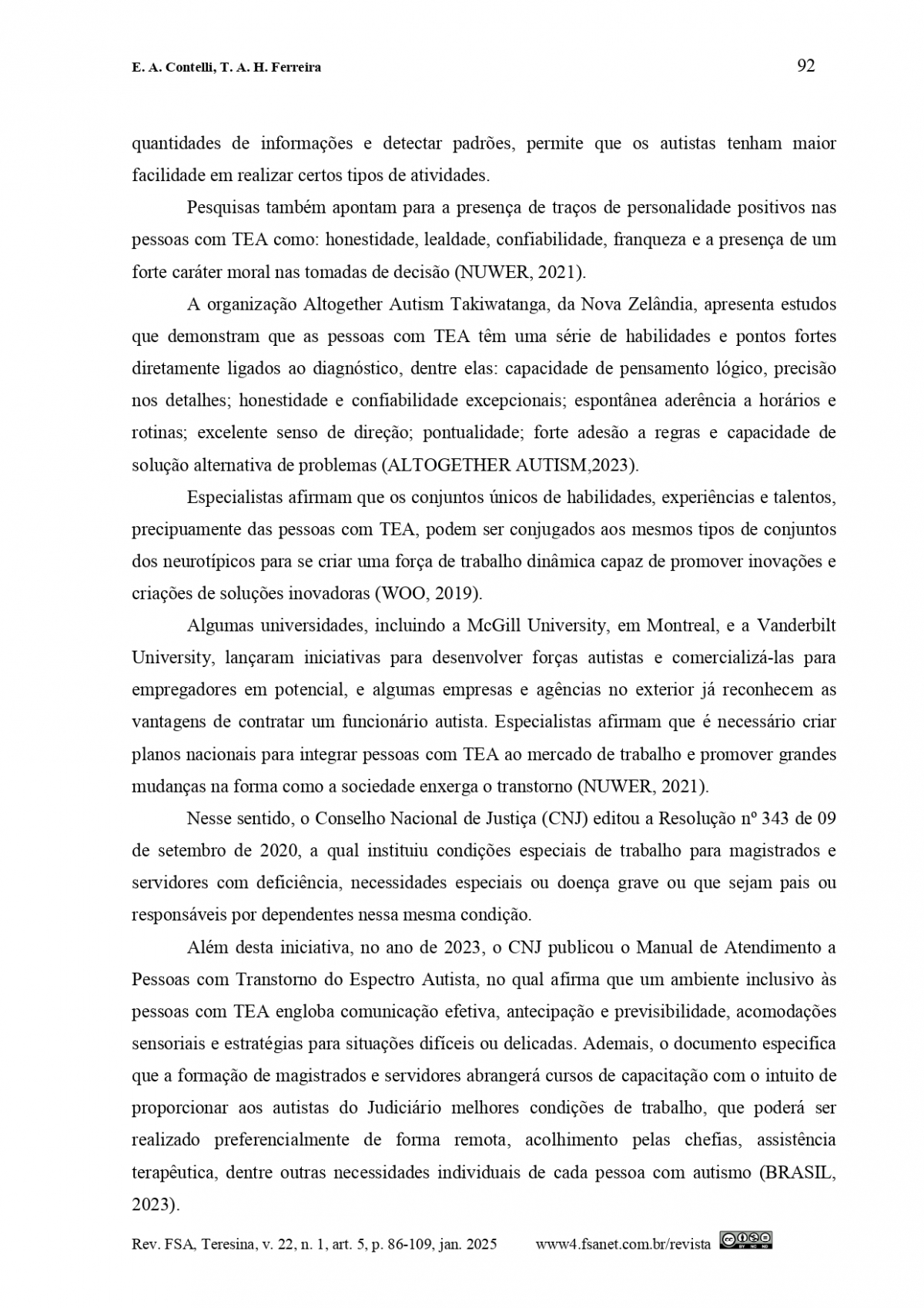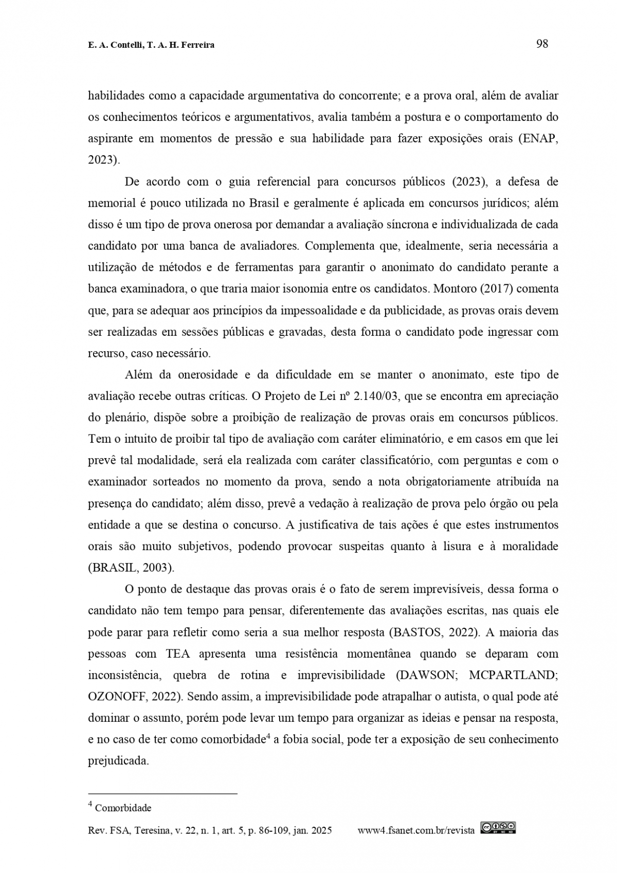 O artigo foi publicado na revista FSA do Centro Universitário Santo Agostinho, edição de janeiro.