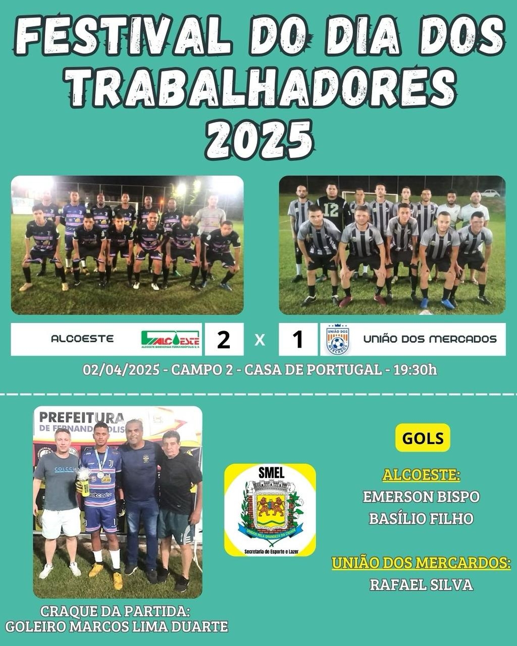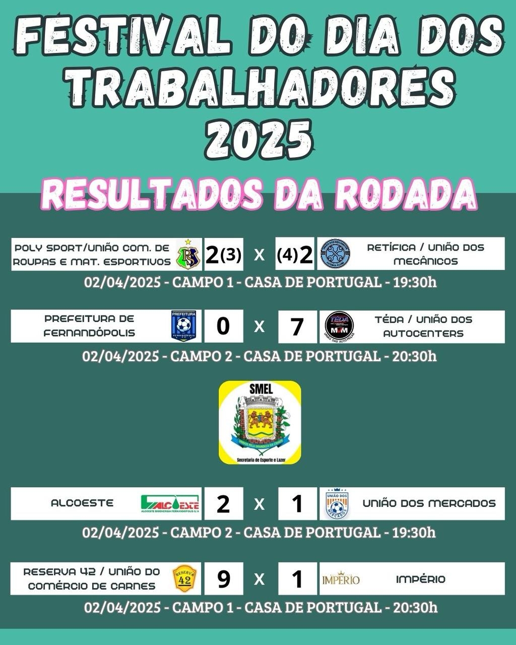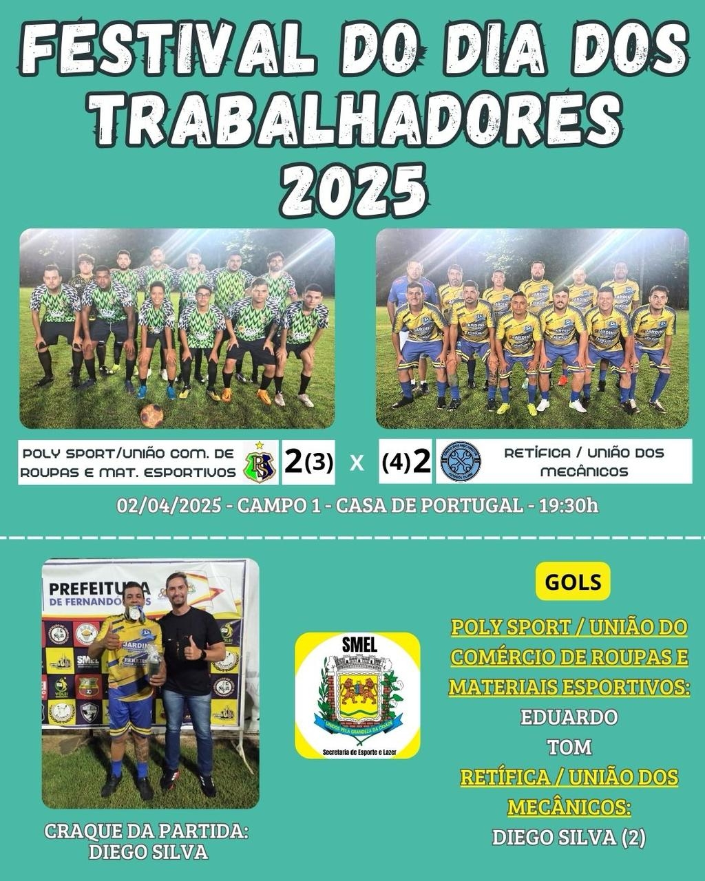 O Festival do Dia dos Trabalhadores 2025 continua na próxima quarta-feira, 9, com mais jogos emocionantes, e a expectativa é de mais uma noite de casa cheia, grandes disputas para o esporte amador da cidade.