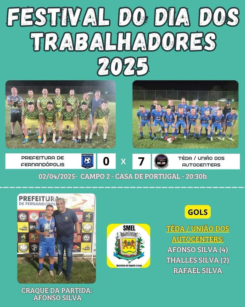 Já no segundo jogo, a equipe da Téda/União dos Autocenters mostrou sua força e não tomou conhecimento do time da Prefeitura de Fernandópolis, goleando por 7 a 0. Afonso Silva brilhou, marcando quatro gols e garantindo o prêmio de melhor jogador da partida.
