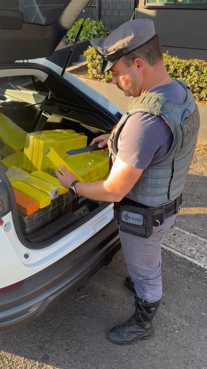 Durante a vistoria no automóvel, os policiais localizaram 480 tabletes de maconha, escondidos no porta-malas e no assoalho do banco traseiro. A droga totalizou 240,8 quilos.