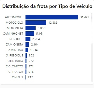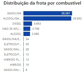 Veículos movido a gasolina são maioria na frota (26.366) seguido por Flex (25.929). A cidade tem 30 veículos elétricos e 13 híbridos.