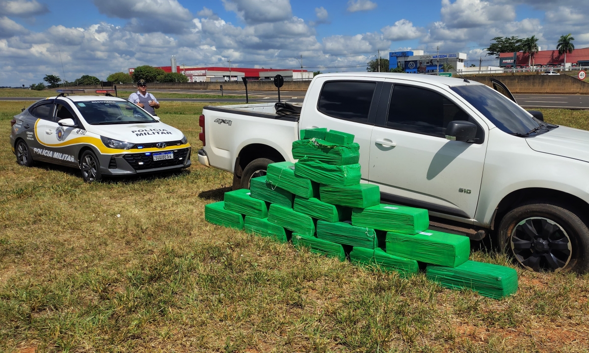 Na vistoria veicular, os policiais rodoviários localizaram grande quantidade de maconha acondicionada em 16 fardos na caçamba da caminhonete, totalizando 402,5 kg. O criminoso possui antecedente criminal por Tráfico de Drogas.