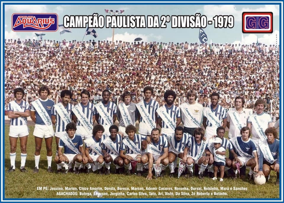 Tato foi o artilheiro no time de 1979 que marcou história no futebol do interior. Na foto o time campeão, no jogo das faixas no Estádio Claudio Rodante lotado. Fotos do arquivo de Gilmar Gavioli
