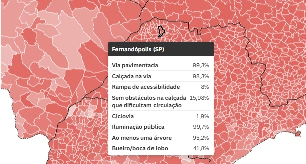 Mapa do IBGE mostra o perfil da infraestrutura do município de Fernandópolis