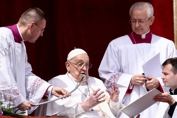 Papa em breve aparição na varanda da Basílica São Pedro durante a celebração da Páscoa neste domingo, 20