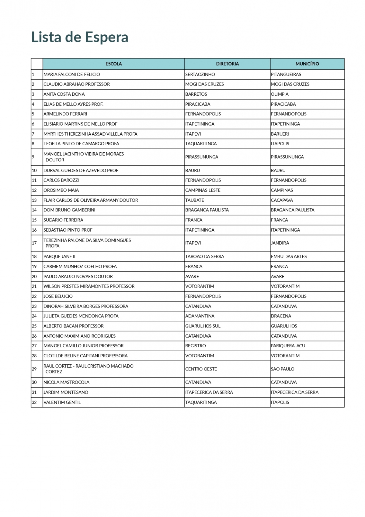 As escolas Carlos Barozzi, José Belúcio e Armelindo Ferrari estão numa lista de espera que inclui 32 escolas (veja abaixo).