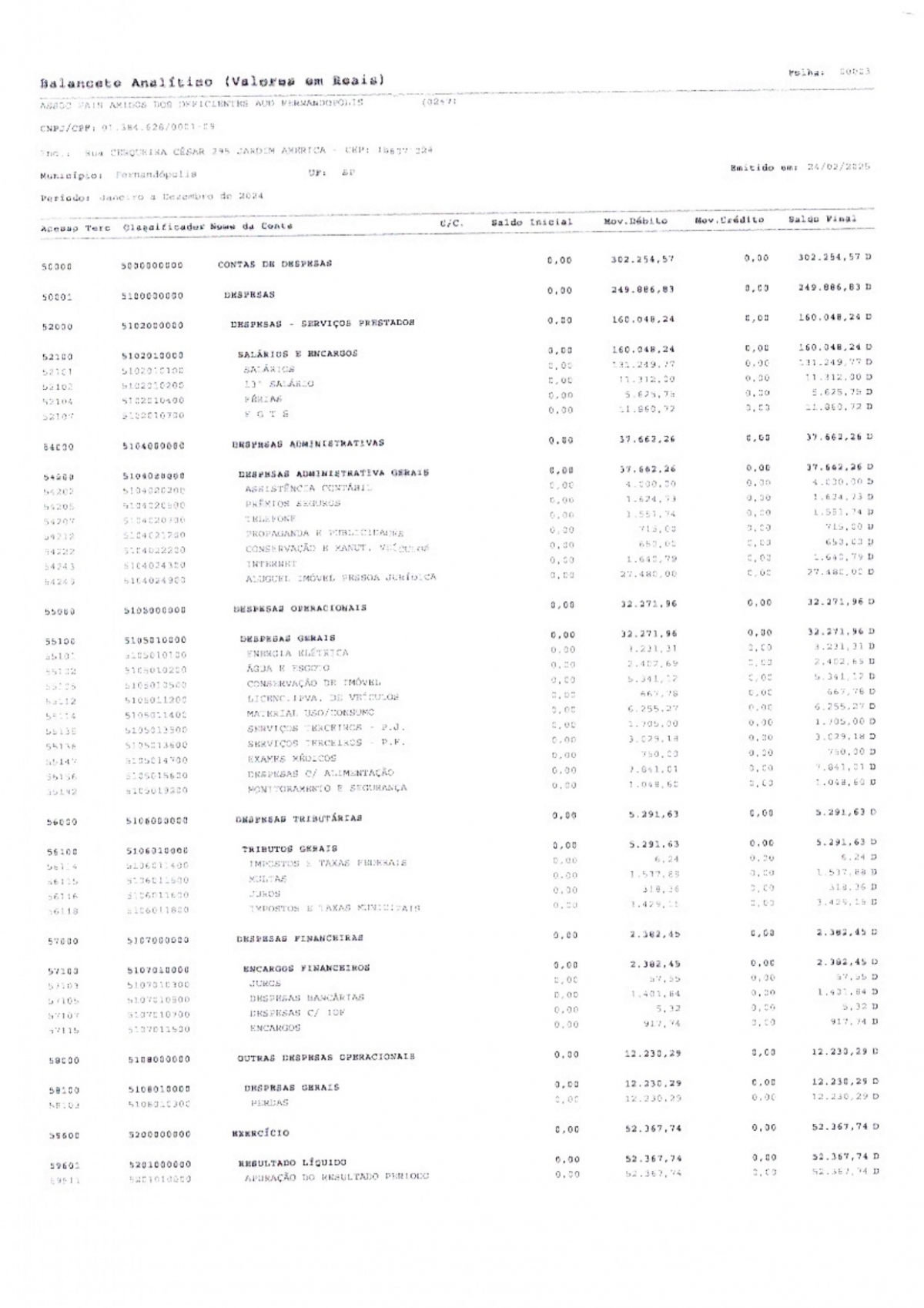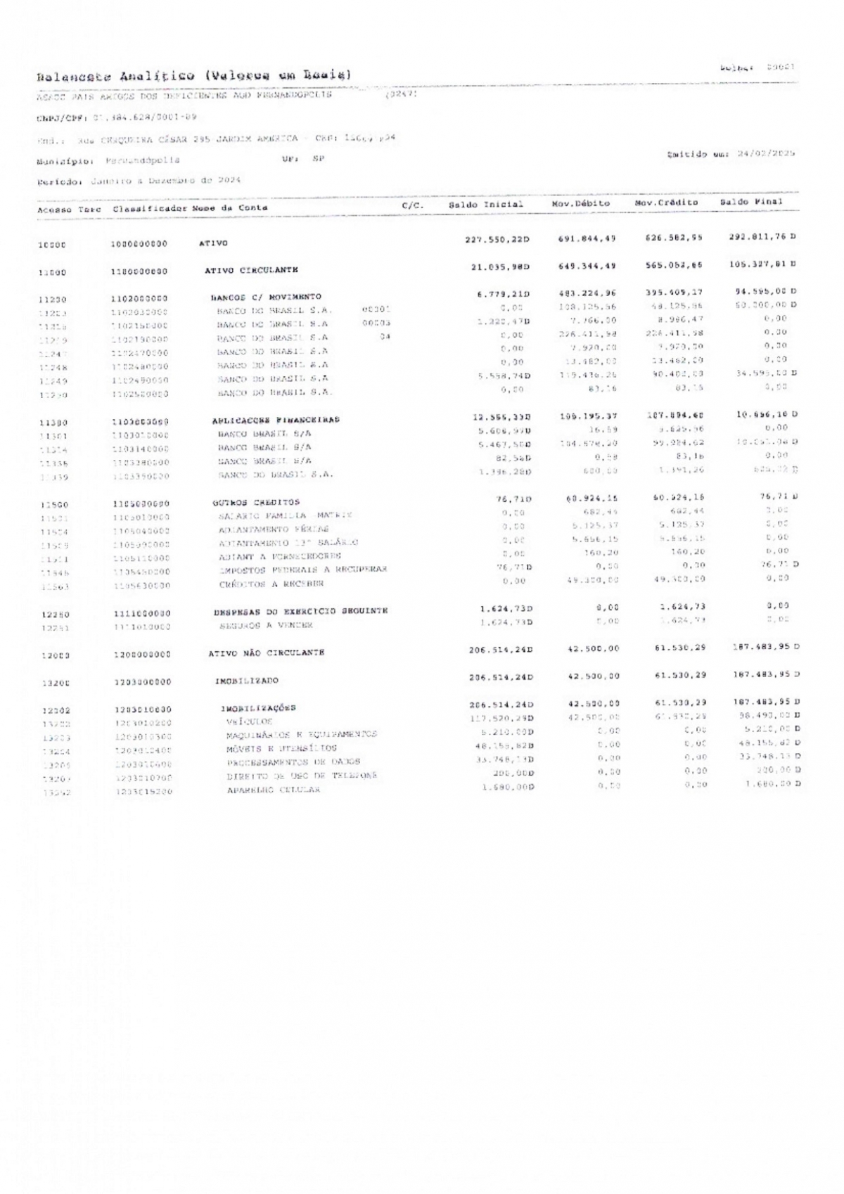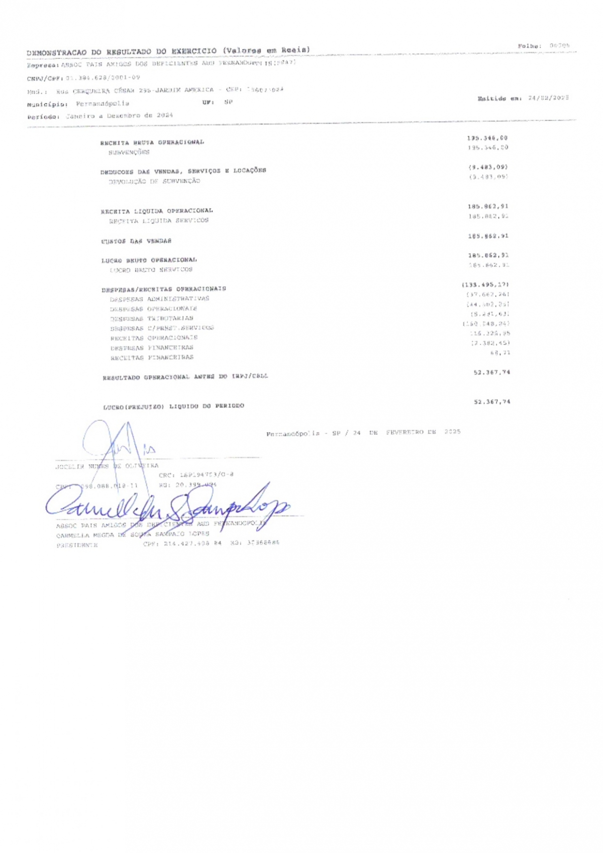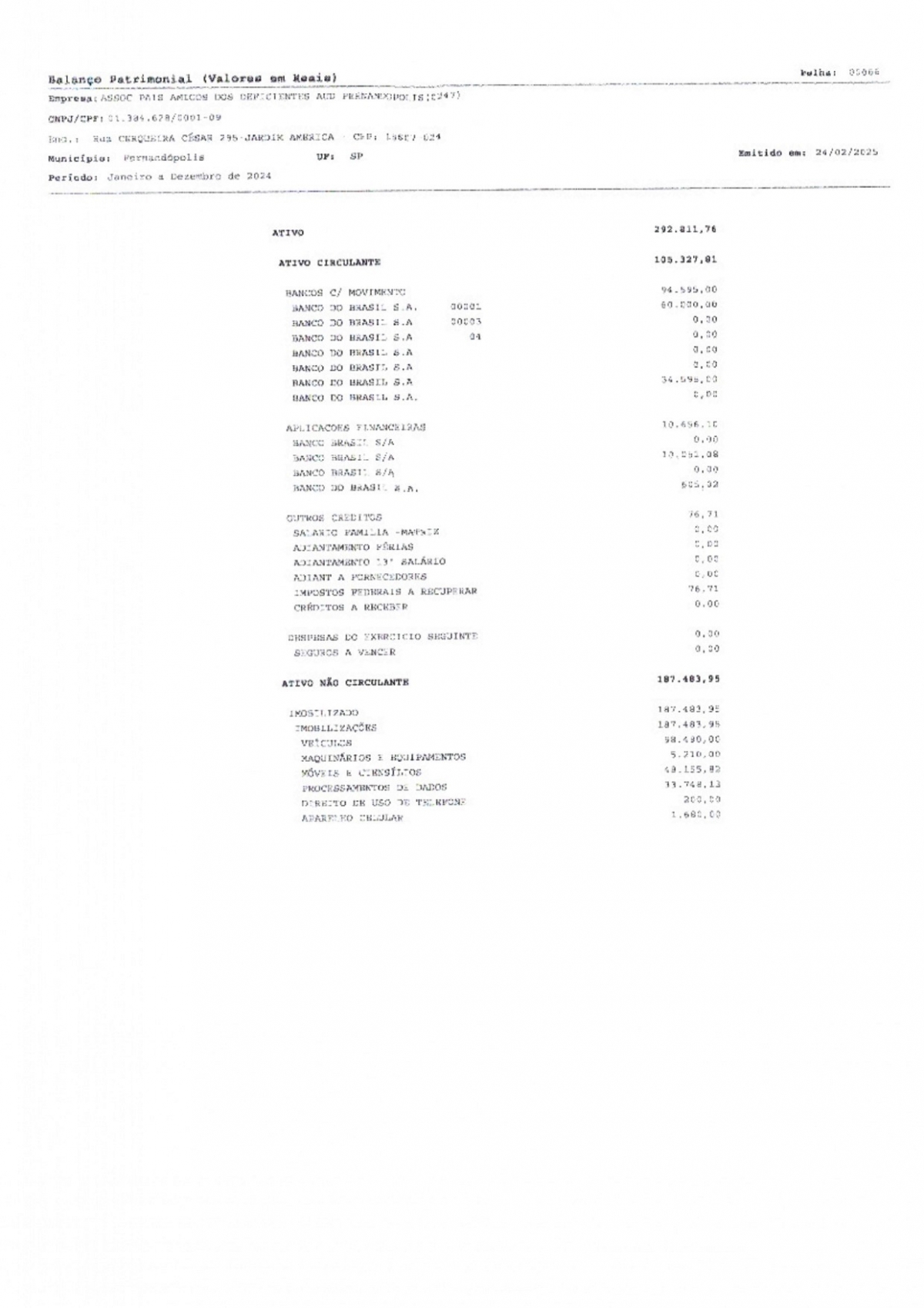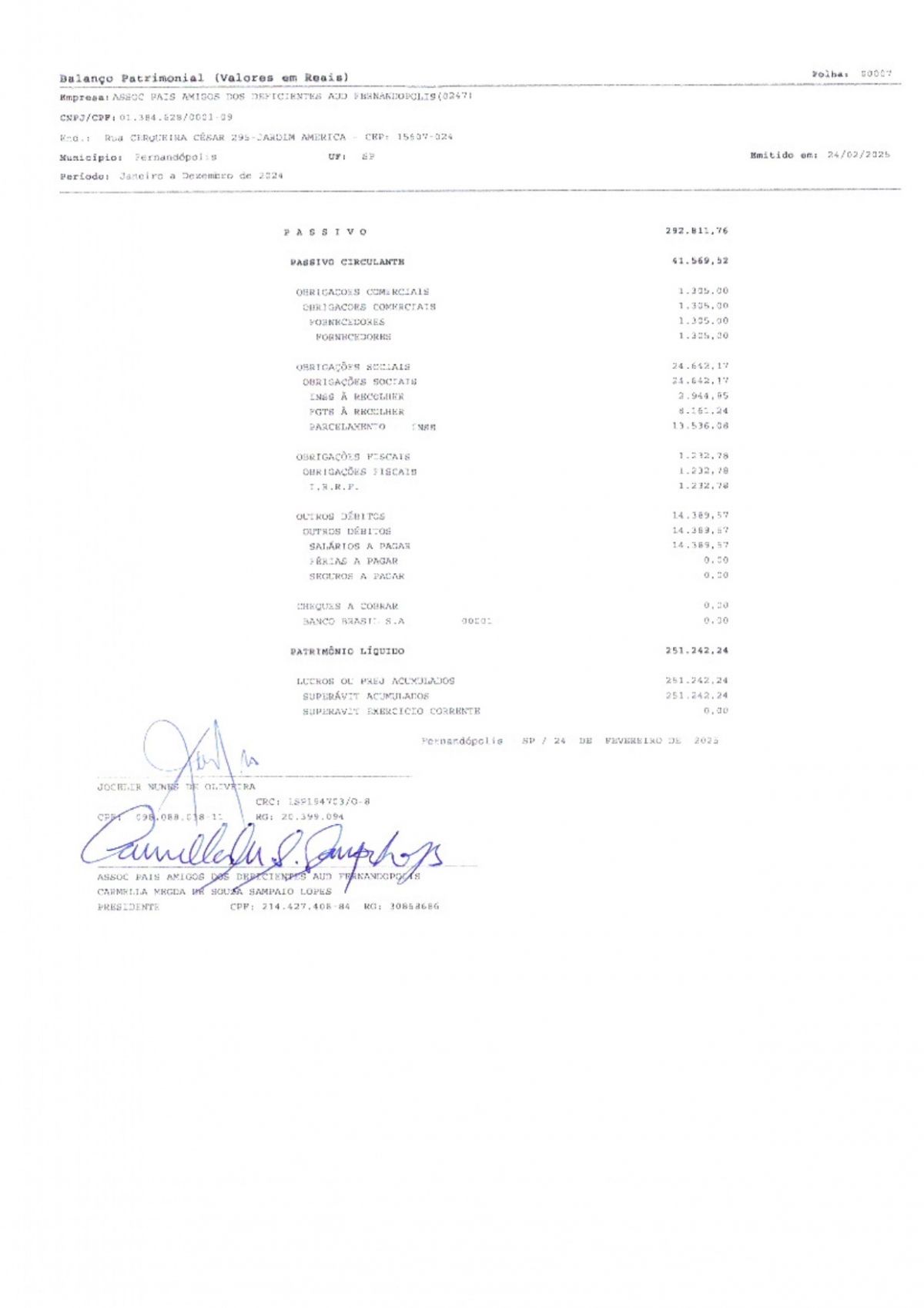 ASSOCIAÇÃO DE PAIS E AMIGOS DOS DEFICIENTES AUDITIVOS DE FERNANDÓPOLIS - BALANCETE 2024