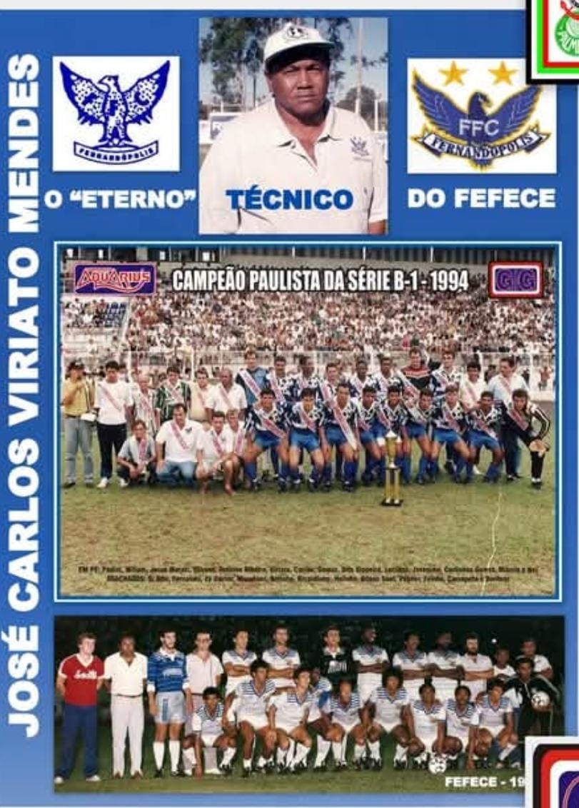 Viriato Mendes tem sua história de treinador de futebol ligada ao Fernandópolis FC, onde construiu um legado eternizado no clube. O empresário Gilmar Gavioli que desenvolveu um trabalho de resgate histórico de craques e treinadores que passaram pelo Fefecê, em entrevista ao CIDADÃOnet não teve dúvidas em apontar Viriato Mendes como o principal treinador da história do clube. “Em minha opinião, o Sr José Carlos Viriato Mendes o técnico que mais está na memória do torcedor, até por que, ele comandou o time, por 14 temporadas. Sempre quando a Diretoria demitia algum treinador, era ele que assumia a “bucha”. Isso sem contar, a grande conquista que ele comandou em 94 né...”