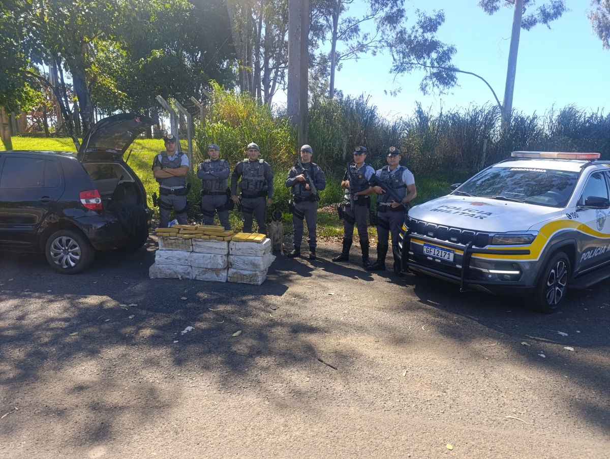 Durante operação conjunta com a Força Integrada de Combate ao Crime Organizado e com o Canil do 9º foi abordado um VW/Fox ocupado por um casal e na vistoria veicular no porta-malas do veículo os Policiais localizaram grande quantidade de tijolos de maconha, totalizando 208 kg; os Policiais constataram também que o automóvel havia sido furtado no dia 17/04/2025 em Ribeirão Preto. Droga e veículo apreendidos e traficantes presos em flagrante, sendo encaminhados para a Polícia Federal de São José do Rio Preto.