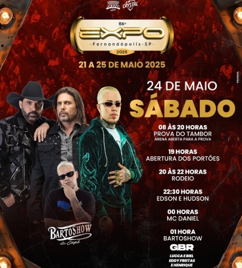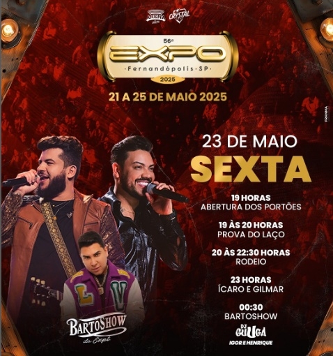 Com show de Zezé Di Camargo e Luciano, começa nesta quarta-feira, 21, a 56ª edição da Expo Fernandópolis, no Recinto de Exposições Dr. Percy Waldir Semeghini, com portões liberados ao público sob organização do empresário Gutinho Sisto.