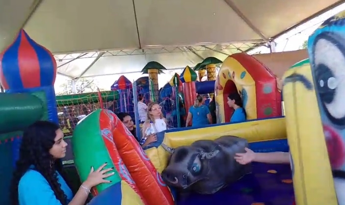 Parque de brinquedos infláveis atraem as crianças no Beira Rio. Atrações para o dia todo