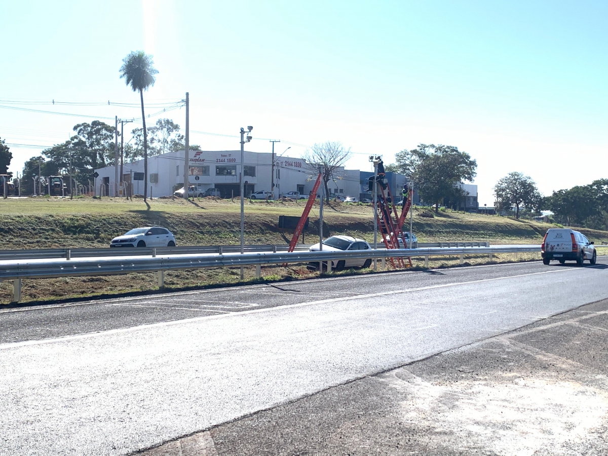 Novos radares na Euclides da Cunha; funcionários instalam equipamentos entre a Passarela do Jardim Araguaia e viaduto da Expedicionários nesta sexta-feira