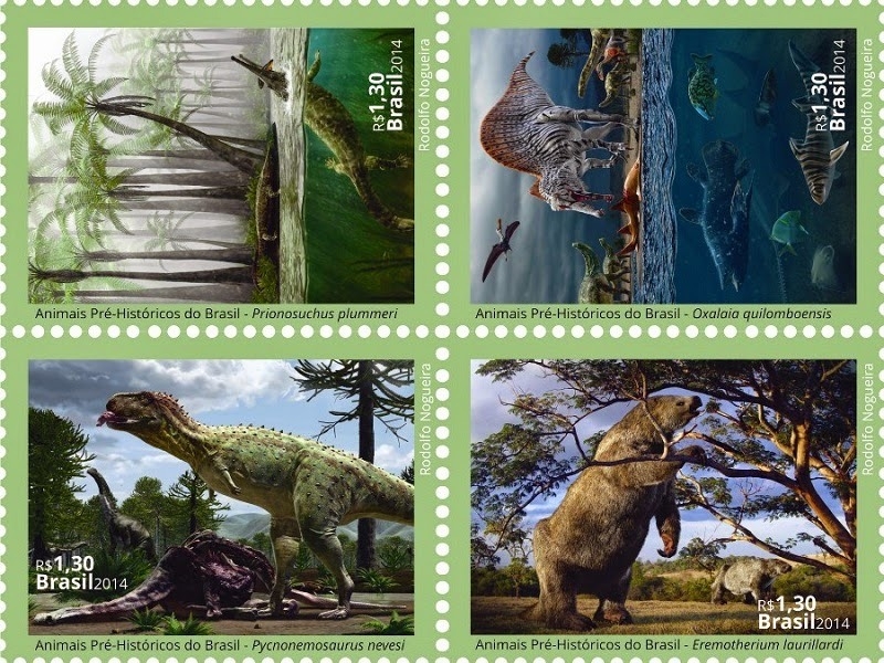 Trabalho de Rodolfo ilustra selos brasileiros na série "animais pré-históricos do Brasil"