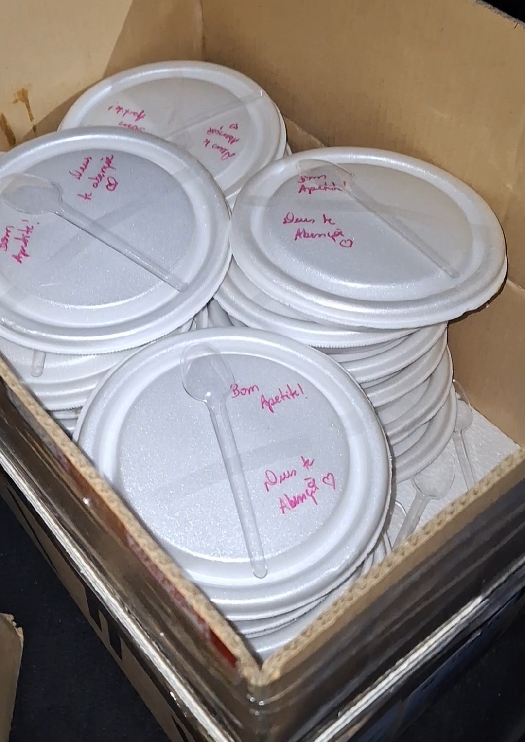 Marmitas chegaram com mensagens aos moradores em situação de rua