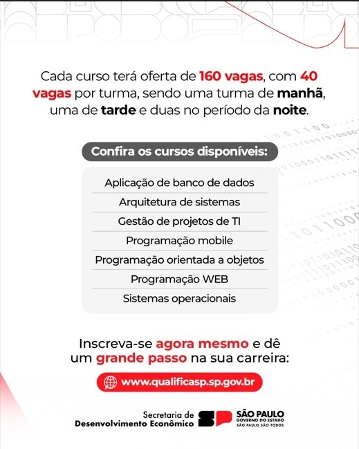 Para se inscrever, acesse o site https://www.qualificasp.sp.gov.br/.