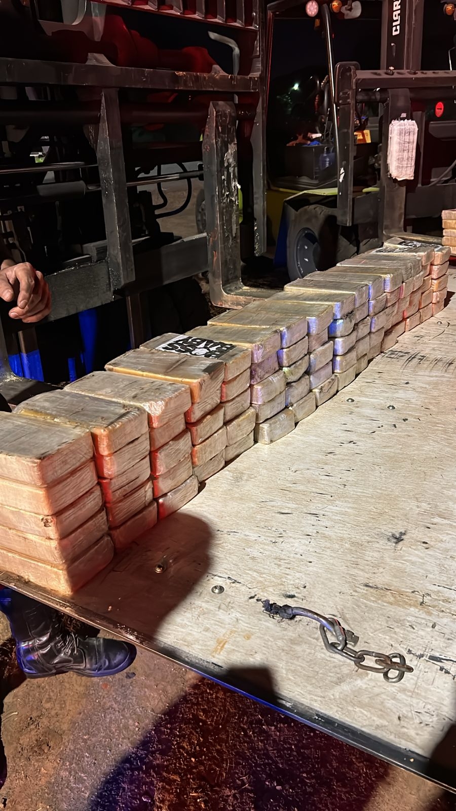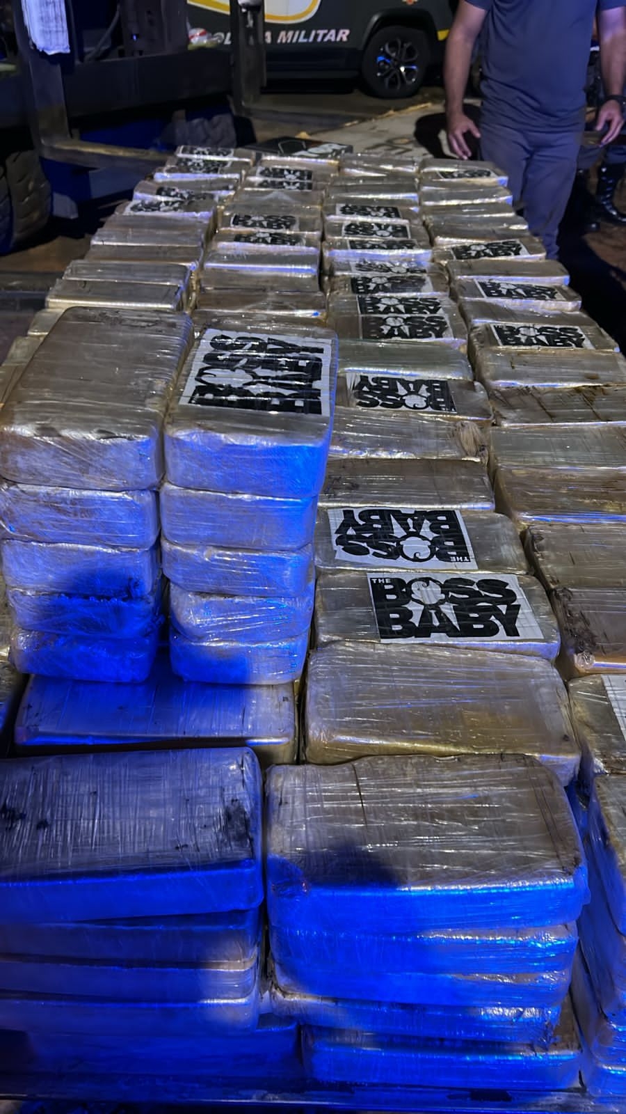 De acordo com a ocorrência, a droga estaca escondida em fundo falso de uma carreta Scania/R440 tracionando um semirreboque carregado com farelo de soja.
