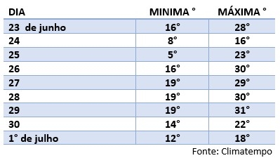 Será uma semana em que o fernandopolense deve experimentar o chamado efeito “ioiô” da temperatura, desce-sobe-desce.