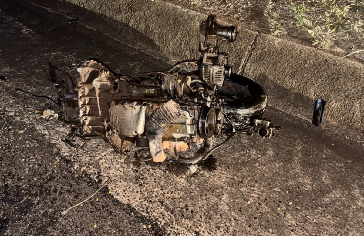 O Fiat Stilo ficou completamente destruído. Com a força do impacto, o motor do carro se desprendeu e foi lançado sobre a pista. O veículo permaneceu parado no meio da rodovia e na sequência, foi atingido por um Fiat Uno vinho.