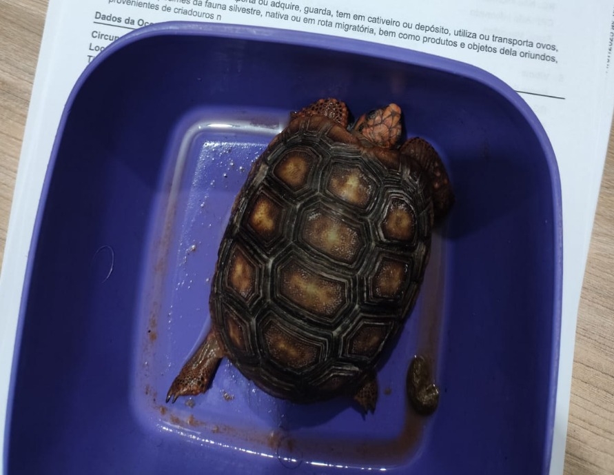 Além do material relacionado ao tráfico, em uma das residências foi encontrado um jabuti mantido em cativeiro sem autorização legal. Diante da situação, foi lavrado um Termo Circunstanciado de Ocorrência (TCO) com base no artigo 29 da Lei 9.605/1998 — a chamada Lei de Crimes Ambientais — que prevê pena de detenção de seis meses a um ano e multa para quem mantiver em cativeiro animais silvestres sem autorização dos órgãos competentes.