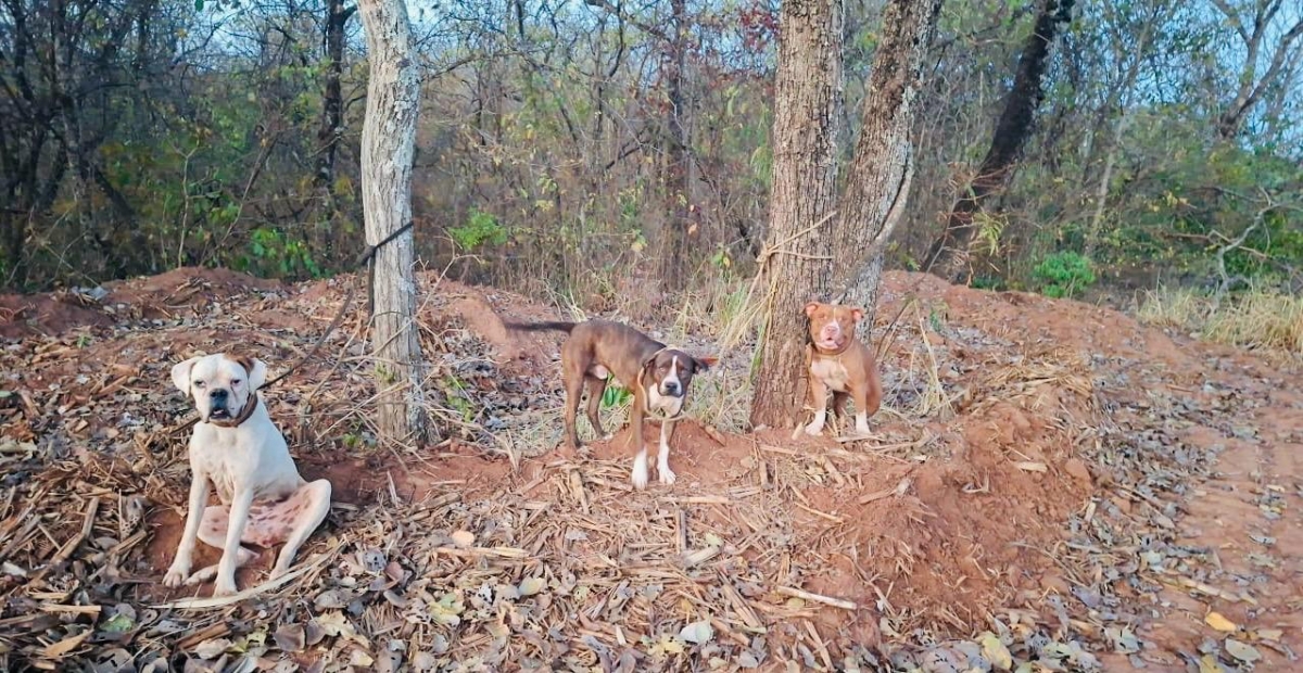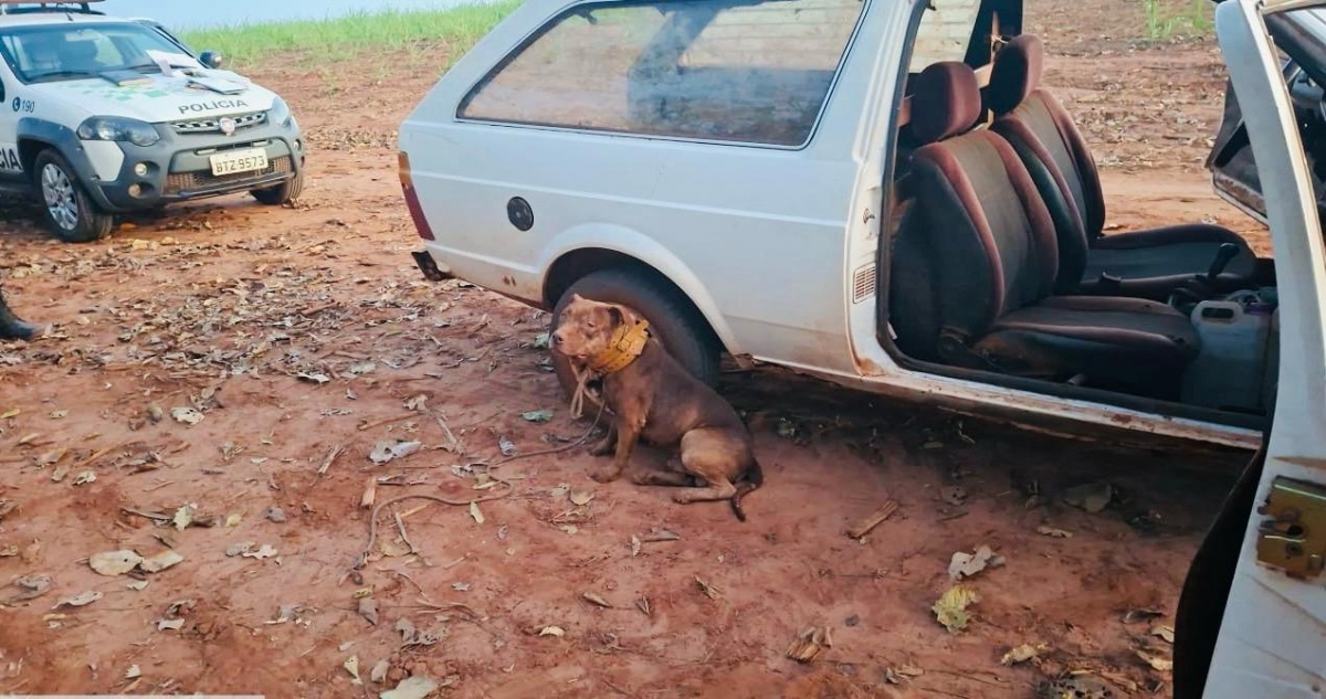 De acordo com a corporação, os agentes avistaram um veículo circulando pelos carreadores da propriedade rural e decidiram abordá-lo, suspeitando da prática de caça. Durante a vistoria, foram encontrados nove cães sem raça definida — apenas um deles com colete de proteção —, uma espingarda de pressão da marca Rossi, um recipiente com chumbo (utilizado como munição), uma lanterna, duas facas, um facão e dois rádios comunicadores.
