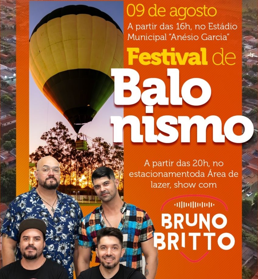 As celebrações têm início no dia 9 de agosto (sábado) com o 1º Festival de Balonismo, seguido por encontro de carros rebaixados e show com Bruno Britto, trazendo o melhor do rock pop nacional. O evento será realizado no estacionamento do Complexo de Esporte e Lazer, onde ficam o Estádio Anésio Garcia e a Área de Lazer.